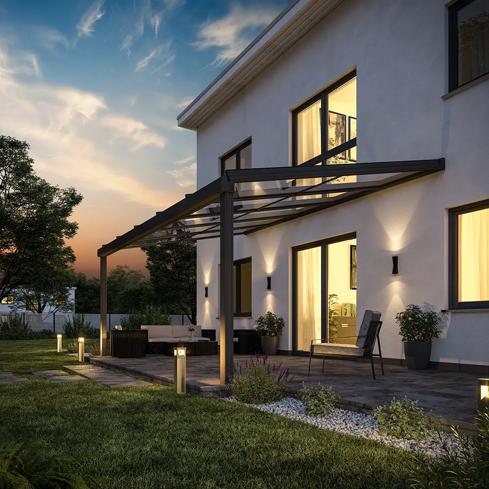 Ob als Sonnenschutz, Regenschutz oder optische Aufwertung – ein Terrassendach schafft nicht nur Komfort, sondern erhöht auch den Wohnwert Ihrer Immobilie. Optional lässt sich das Dach mit zusätzlicher Beschattung oder Seitenelementen kombinieren.